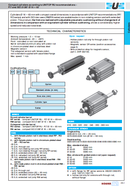UNIVER气缸M系列型号:
