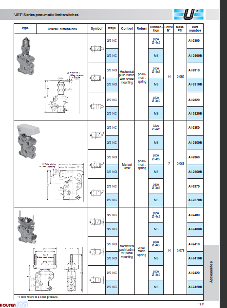 AI-9110 "JET" VALVE 3/2 ROLLER TUBE 4X2